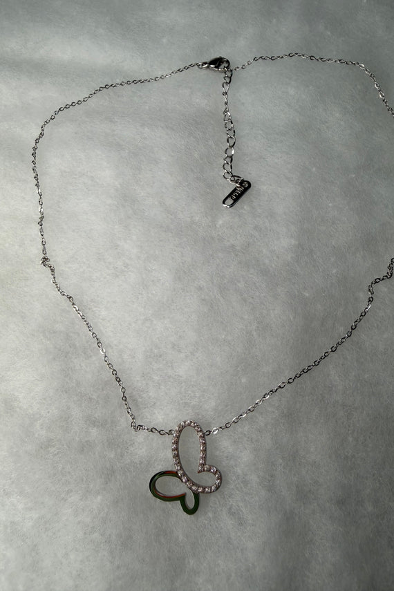Ατσάλινο κολιέ με κρύσταλλα πεταλούδα