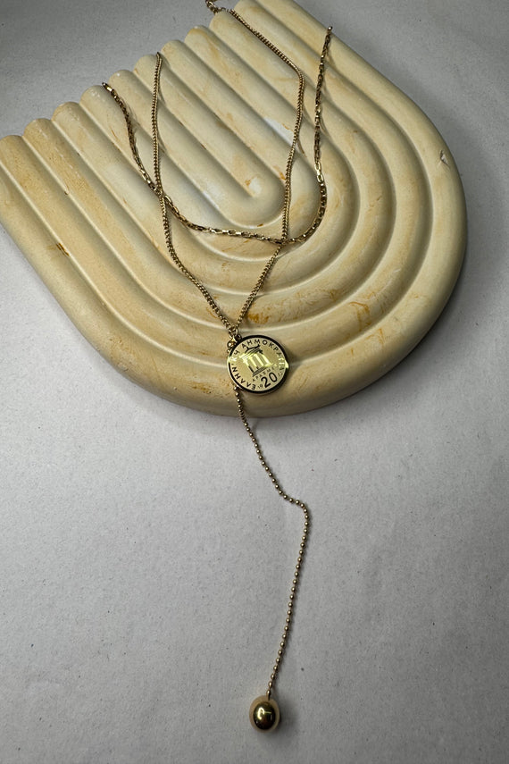 • Ατσάλινo διπλό κολιέ χρυσό με Εικοσάδραχμο