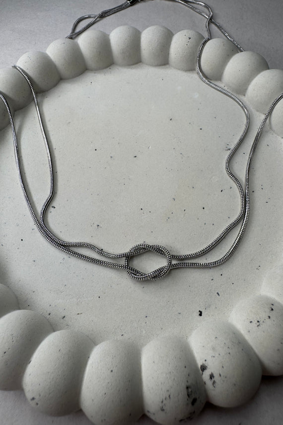 Ατσάλινo κολιέ ασημί με πλεξούδα