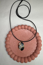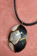 • Ατσάλινo κολιέ μακρύ με κορδόνι με μαύρο-γκρι στοιχείο