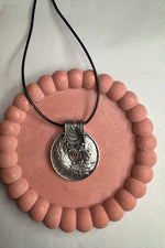 Ατσάλινo κολιέ μακρύ με κορδόνι με boho κυκλικό στοιχείο από κράμα μετάλλων