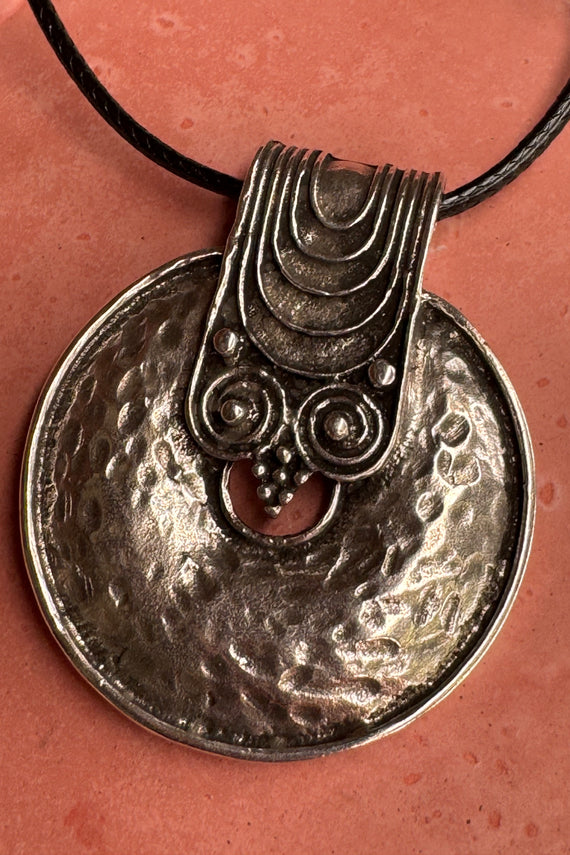 • Ατσάλινo κολιέ μακρύ με κορδόνι με boho κυκλικό στοιχείο από κράμα μετάλλων