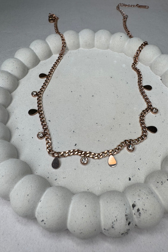 • Ατσάλινo κολιέ ροζ χρυσό με κρεμαστά