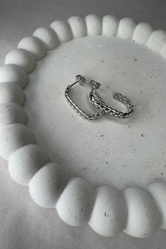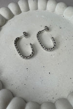 • Ατσάλινα σκουλαρίκια κρίκοι ασημί οβάλ πλεκτοί καρφωτά