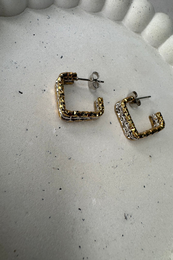 • Ατσάλινα σκουλαρίκια κρίκοι Vintage τετράγωνα δίχρωμα ασημί χρυσό