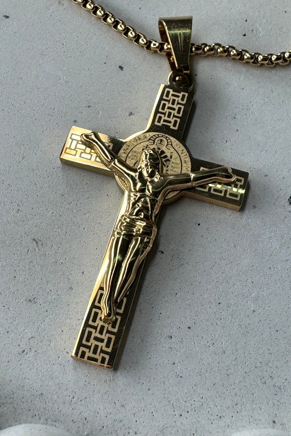 • Ατσάλινo κολιέ χρυσό με τον Εσταυρωμένο