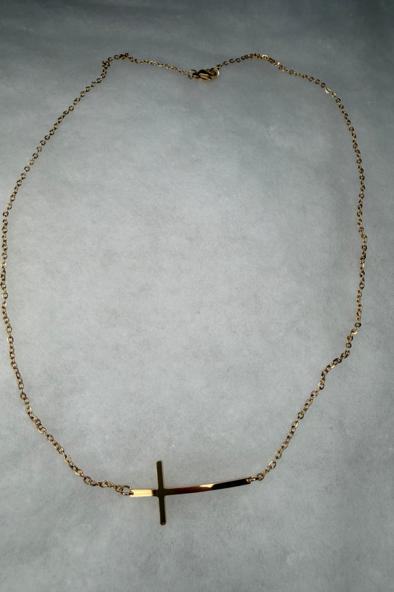 • Ατσάλινο κολιέ με οριζόντιο σταυρό μακρύ