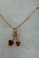 Ατσάλινο κολιέ χρυσό με κερασάκια με κρύσταλλα
