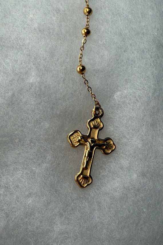 • Ατσάλινο κολιέ χρυσό ροζάριο με σταυρό