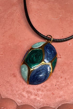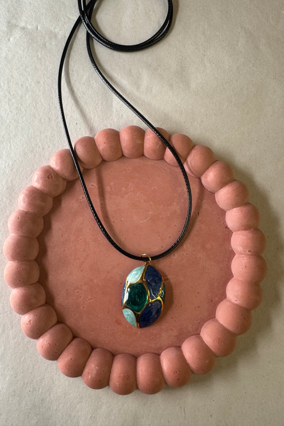 Ατσάλινo κολιέ μακρύ με κορδόνι με μπλε-πράσινο στοιχείο