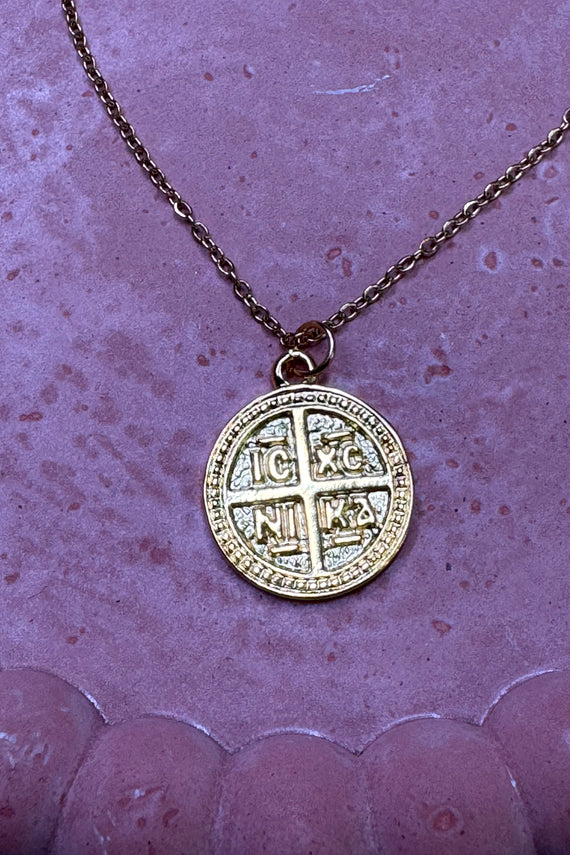 Ατσάλινo κολιέ χρυσό με Κωνσταντινάτο από κράμα μετάλλων