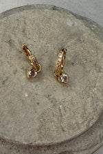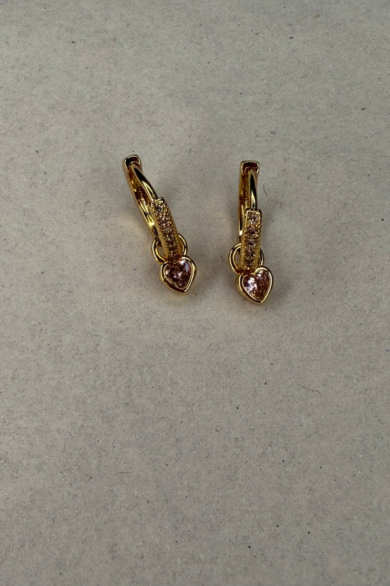 • Ορειχάλκινα σκουλαρίκια κρίκοι χρυσοί με κρύσταλλενια καρδιά