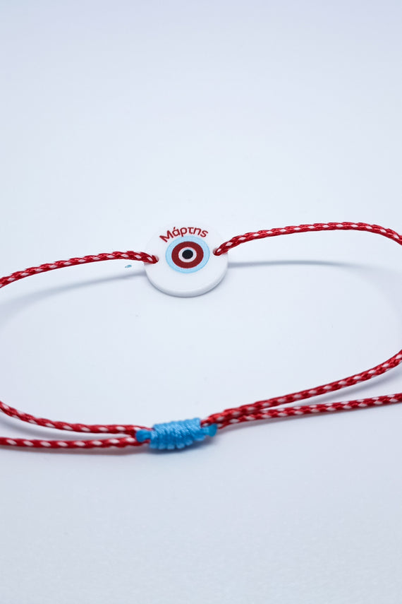 Σύμφωνα με την παράδοση, από τη 1η ως τις 31 του Μάρτη, τα παιδιά φορούν στον καρπό του χεριού τους ένα βραχιόλι, φτιαγμένο από στριμμένη άσπρη και κόκκινη κλωστή, τον Μάρτη ή Μαρτιά. Σύμφωνα με τη λαϊκή παράδοση, ο Μάρτης προστατεύει τα πρόσωπα των παιδιών από τον πρώτο ήλιο της Άνοιξης, για να μην καούν. Τον φτιάχνουν την τελευταία μέρα του Φλεβάρη και τον φορούν την πρώτη μέρα του Μάρτη, πριν βγουν από το σπίτι.