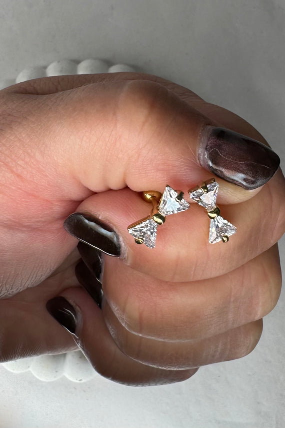 Aτσάλινα σκουλαρίκια χρυσά βιδωτά φιογκάκια με κρύσταλλα (Ιδανικά για όλες τις τρύπες του αυτιού π.χ. τράγος, helix, κ.α.)