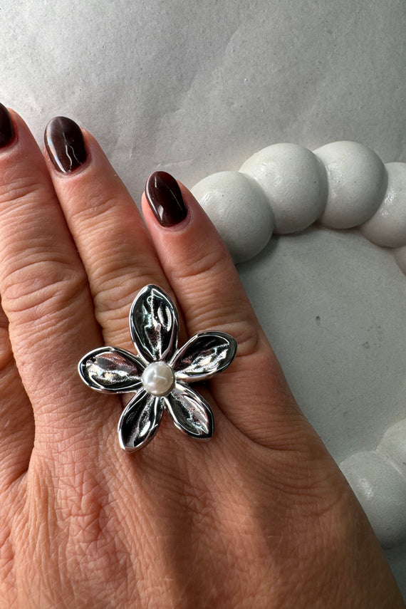 • Aτσάλινο δαχτυλίδι Pearl Flowers One size